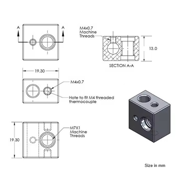 1 diciembre, 2025Bloque Cubo calefactor Hotend MK10 M7 FlashForge, Dremel, Wanhao, Monoprice, MakerBot