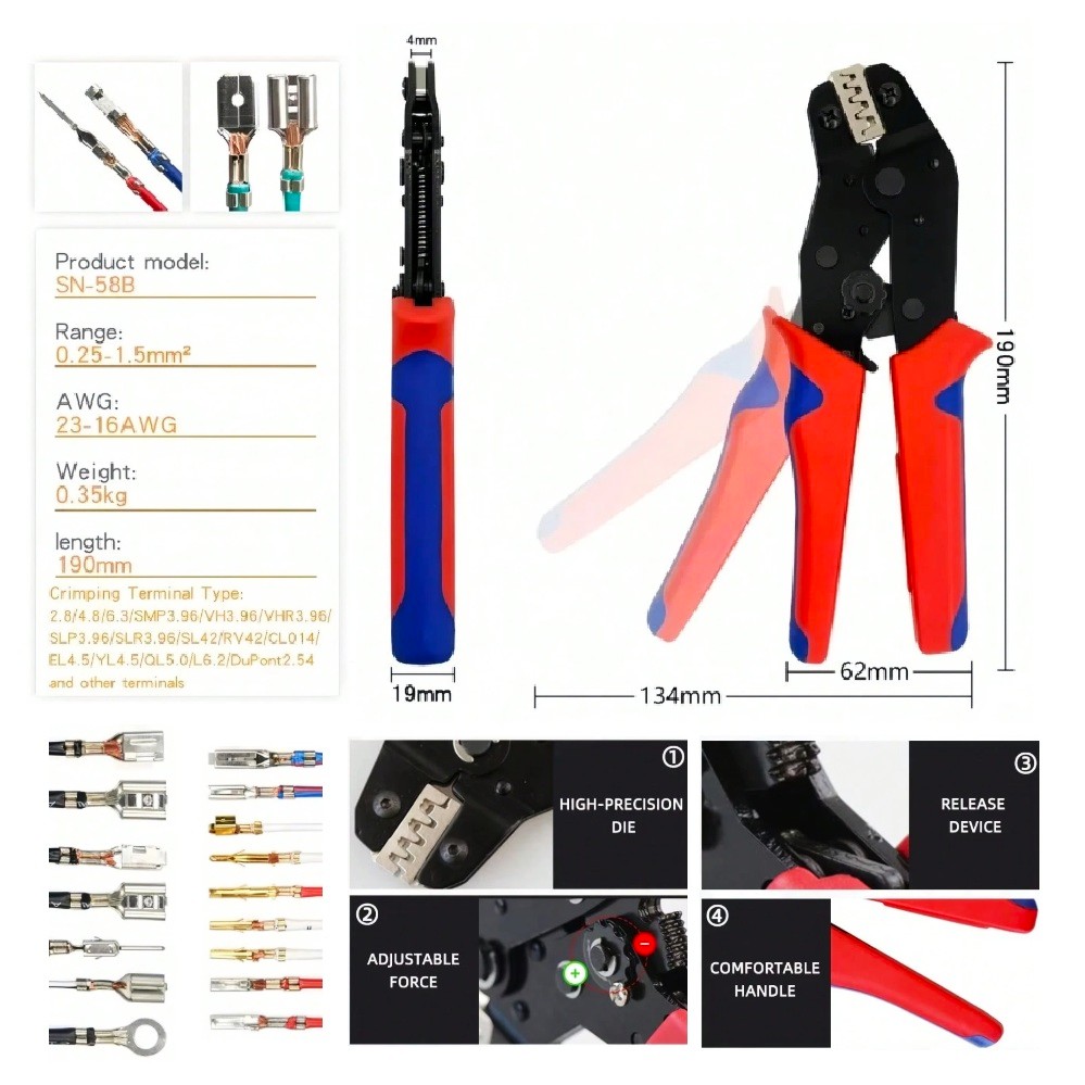 4 diciembre, 2025Ponchadora Crimpadora Ratchet AWG 23-16, JST DUPONT XH2.54, 0.25-1.5 mm2